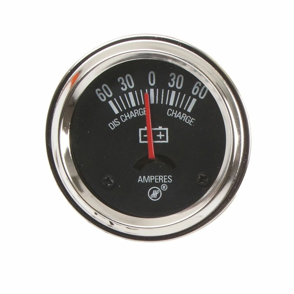 Ammeter gauge has 60-0-60 range unlighted, fits 2″ diameter hole, stainless bezel, black background, white letters and white pointer
