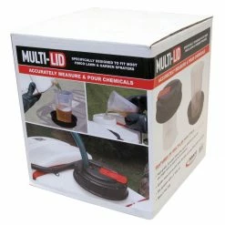 The FIMCO Multi Lid is made to fit sprayers with a 5 inch fill opening. The Multi Lid easily measures liquid product with a 32 ounce measuring cup attached directly onto the tank lid. A garden hose port secures the hose for safe and easy filling of the tank with one person. No more going to the shop or needing to carry an extra measuring cup when you have a Multi Lid.
