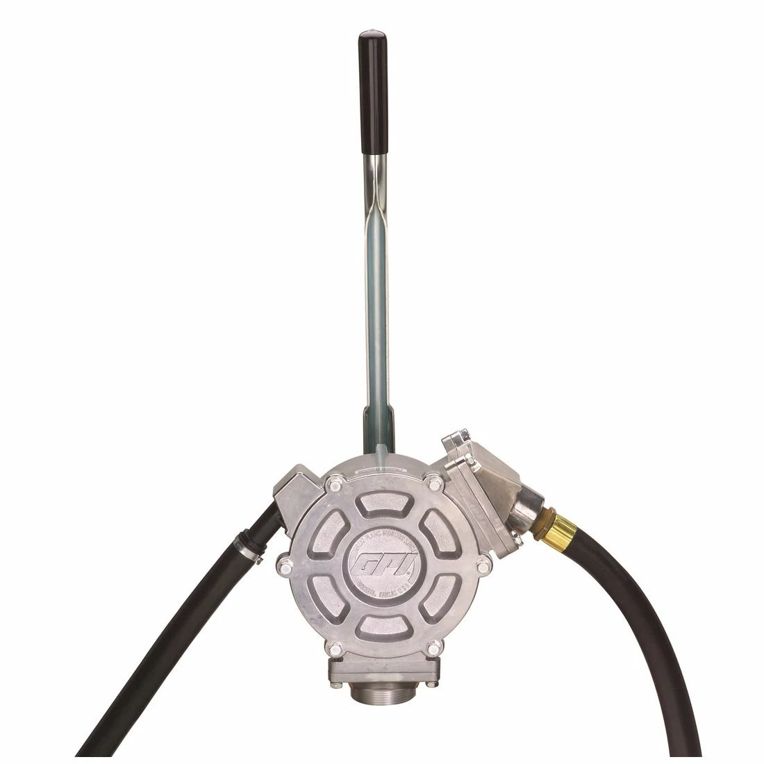 The GPI HP100-NUL is GPI’s premium fuel piston hand pump, featuring a Dual-Flo piston design that pumps fluid on both the push and pull stroke delivering the highest flow rate in the industry year after year, up to 50 gallons per 100 stroke cycles (push/pull). The two-position handle allows you to change increments from quarts to pints to dispense gasoline, diesel fuel and kerosene with ease. The HP100-NUL is constructed from light weight and durable cast aluminum. Comes with lockable handle, fuel hose and thermoplastic spout nozzle. 2-year warranty.
