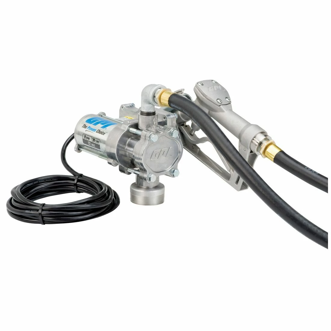 This GPI EZ-8 fuel transfer pump features a rotary gear design and is made from durable, lightweight cast aluminum. The 12-VDC motor delivers gas station equivalent flow rates (up to 8 GPM) for gasoline, diesel fuel and kerosene. The EZ-8 is ideal for on the go fueling for agricultural and automotive applications and is the pump of choice for refueling recreational vehicles. The EZ-8 comes with a manual unleaded nozzle, fuel hose, power cord and adjustable suction pipe. Motor UL Listed to US and Canadian Standards. 2 year warranty.